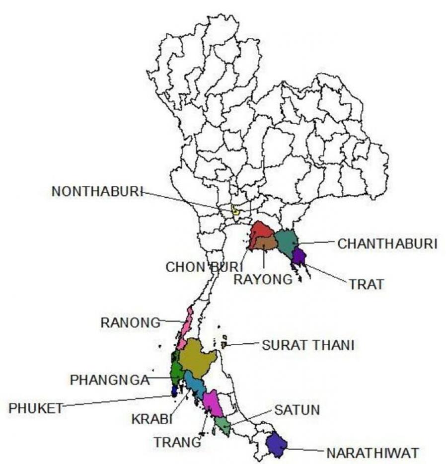 • แผนที่แสดงจังหวัดพื้นที่เกาะ